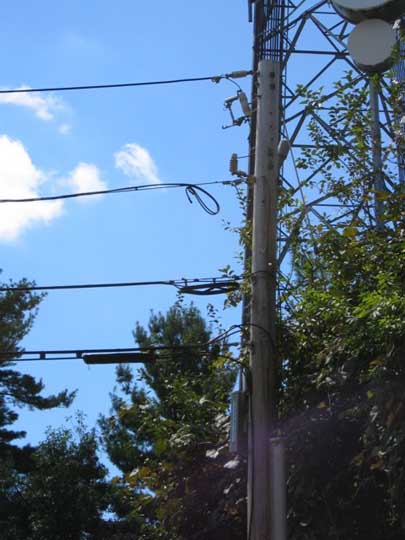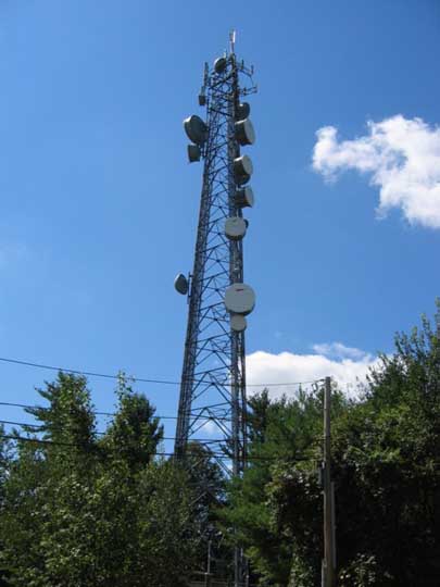 Above and below, the Microwave and cellular antennas on this heavy duty tower. You can also see a Cingular Wireless tower across the street